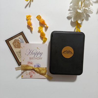 جعبه جنس فلزی درب دار همراه کارت پستال مناسبتی از جنس گلاسه روکش سلفون، مناسب سکه و شمش های کادویی